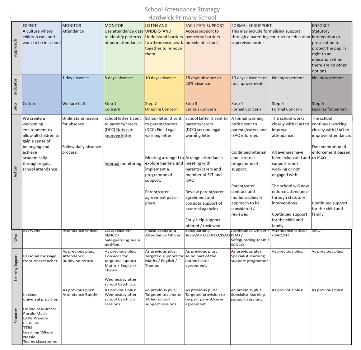 Strategies for supporting good attendance